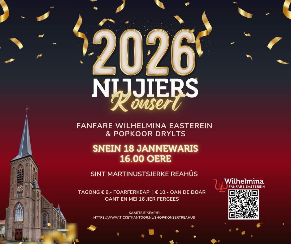 Sint Martinuskerk Reahûs Slypsterwei 3, Reahus, NetherlandsBegin het nieuwe jaar met muziek! Op zondag 18 januari organiseert Fanfare Wilhelmina Easterein een bijzonder nieuwjaarsconcert in de prachtige Sint Martinuskerk in Reahûs. 🕓 Aanvang: 16.00 uur📍 Locatie: Sint Martinuskerk, Reahûs Onder leiding van dirigent Wilbert Zwier brengt Wilhelmina een afwisselend programma, met onder andere muziek uit Harry Potter, een flitsend openingswerk en bijdragen […]